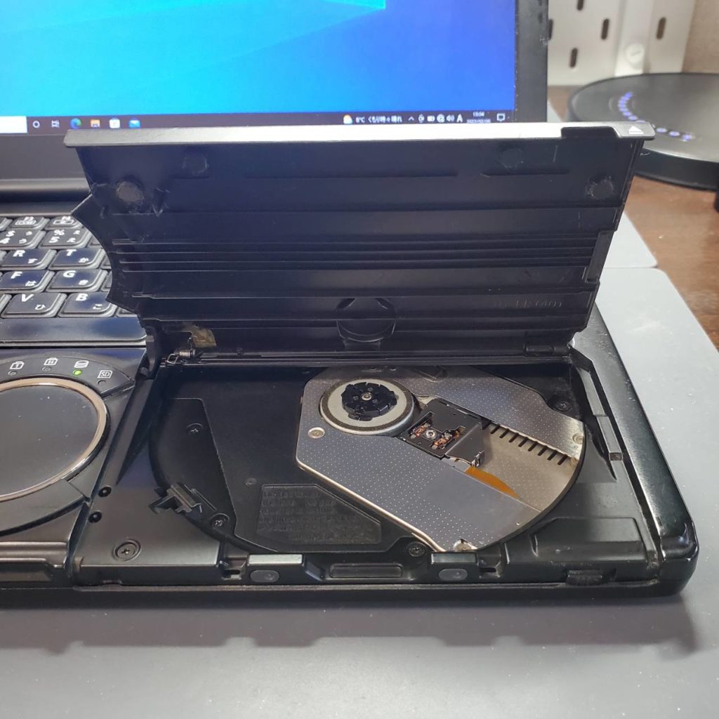 市川市のお客様からノートパソコンの光学ドライブ(DVDドライブ)が開かないというご相談です。