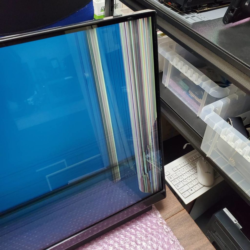 パッと見薄い傷が付いただけだと思い電源を付けてみたら画面の端に複数の縦線が入って何も映らなくなってしまいました・・」
